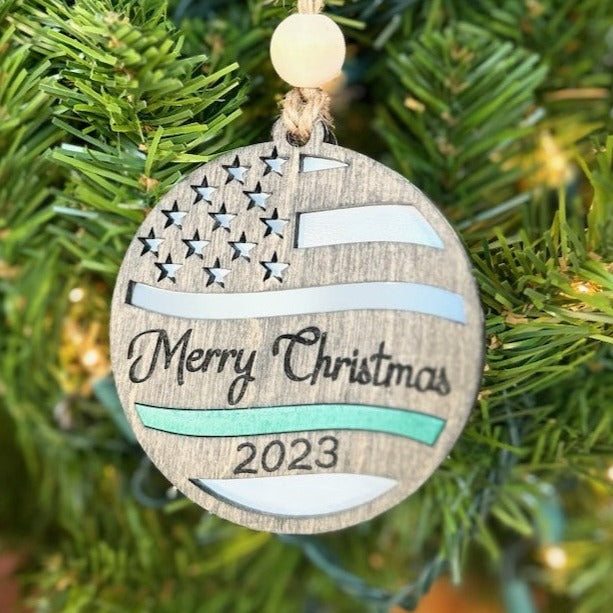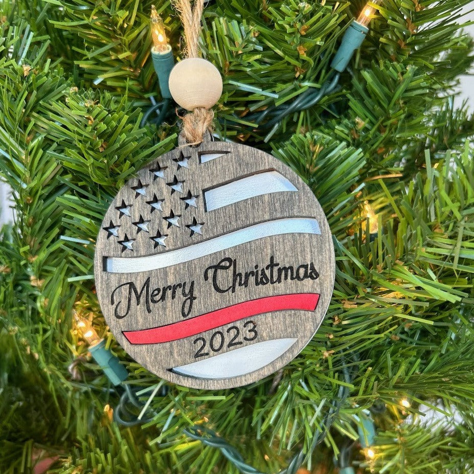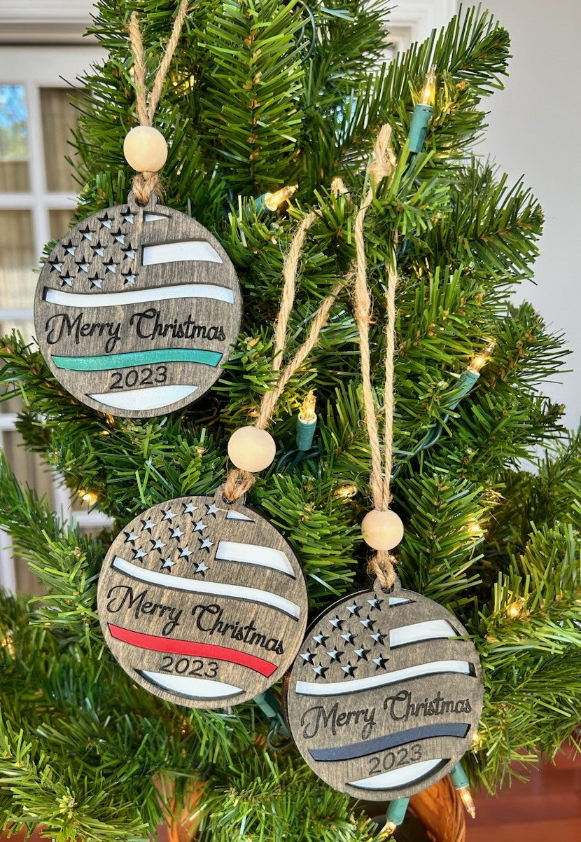 American Flag Christmas ornament Police, Firefighters, and Armed forces
