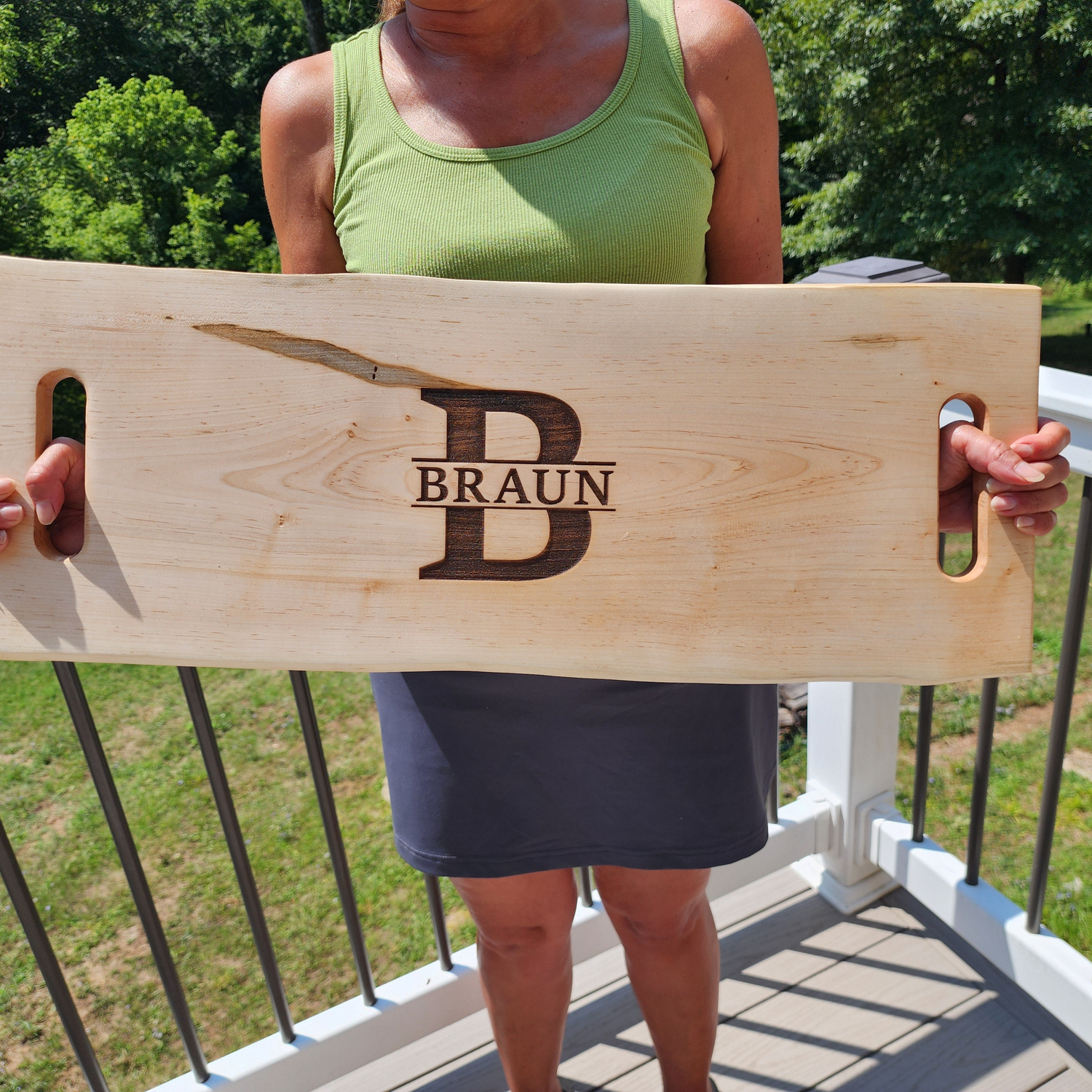 Personalized Farmhouse Charcuterie Bread Board with Handle, Last Name Gift, Engagement Gift,...